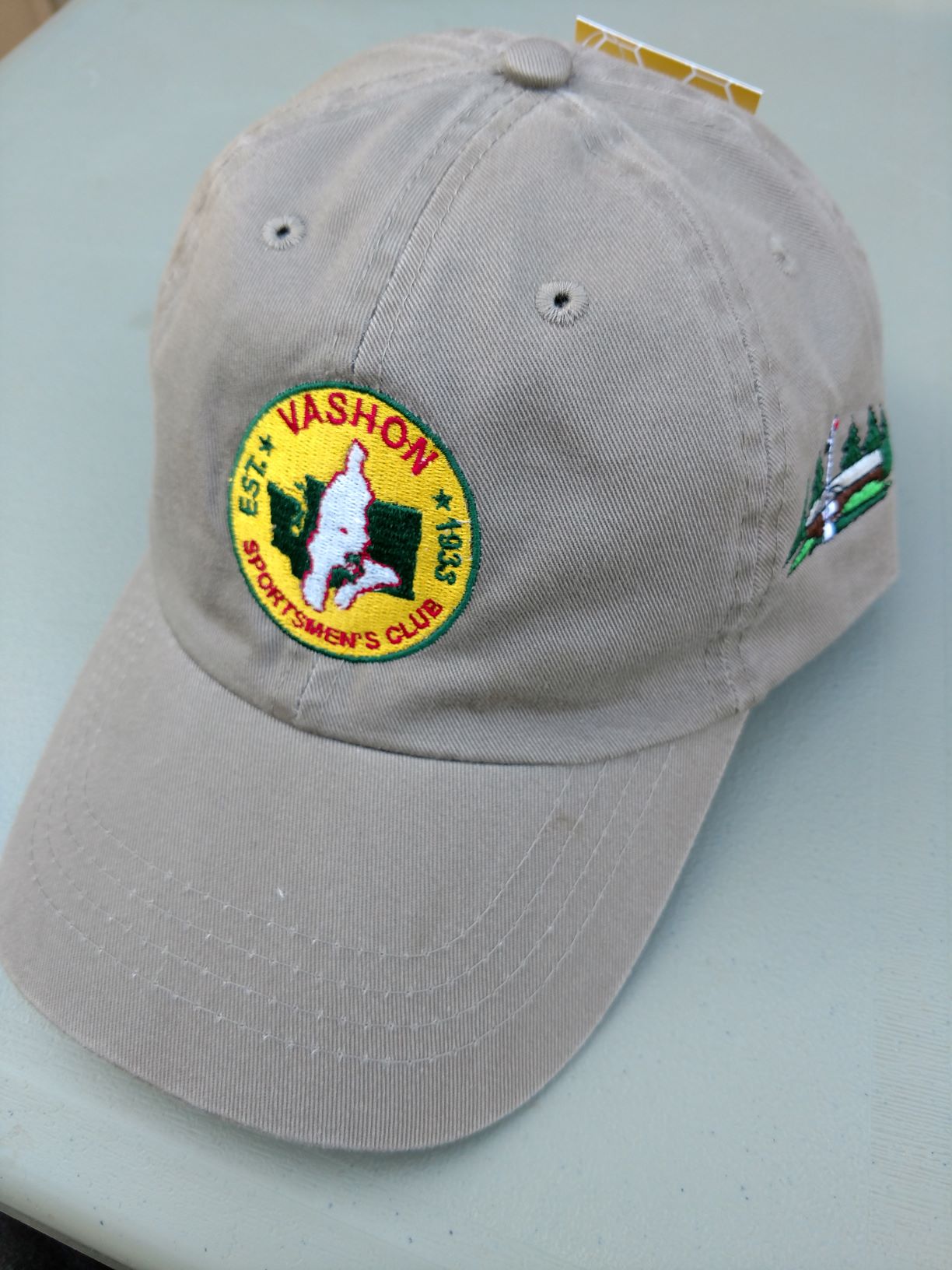 Available are Custom Embroidered Caps, decorated to your specification, with personalization available at a low additional cost. Members may also have T-Shirts, Shirts, Bags, Jackets embellished with the Vashon Sportsmen’s Club Logo, inquire.