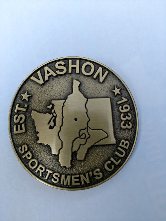 Also available are Vashon Sportsmen’s Club Logo belt buckles and Decals.
